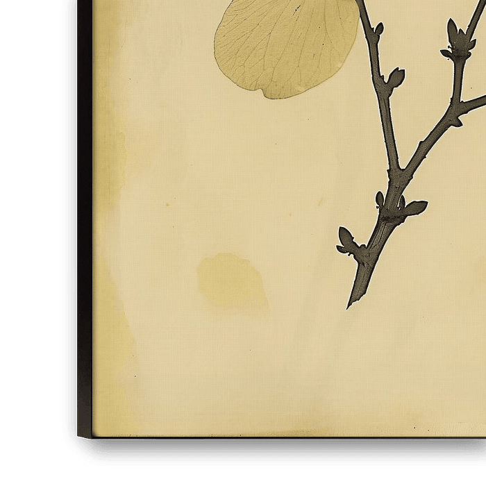 Dieses stilvolle Design zeigt eine einfache, aber elegante Darstellung von Blumen und Blättern vor einem cremefarbenen Hintergrund. Die Sepiatöne sorgen für eine warme und friedliche Atmosphäre, perfekt für eine ruhige und inspirierende Umgebung. Dieser Druck ist ideal für ein Büro oder ein Schlafzimmer, wo er eine subtile, aber schöne Ergänzung des Interieurs sein wird. Die feinen Details der Blütenblätter und die sichtbaren Adern der Blätter unterstreichen die künstlerische Präzision, mit der dieses Werk ausgeführt wurde, und machen es zu einer zeitlosen Wahl für Liebhaber der natürlichen Schönheit.
