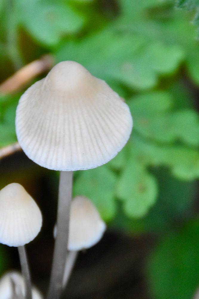Eine wahrhaft holländische Herbstszene, anmutige weiße Pilze auf einem umgestürzten Baumstumpf im Amsterdamer Bos.
