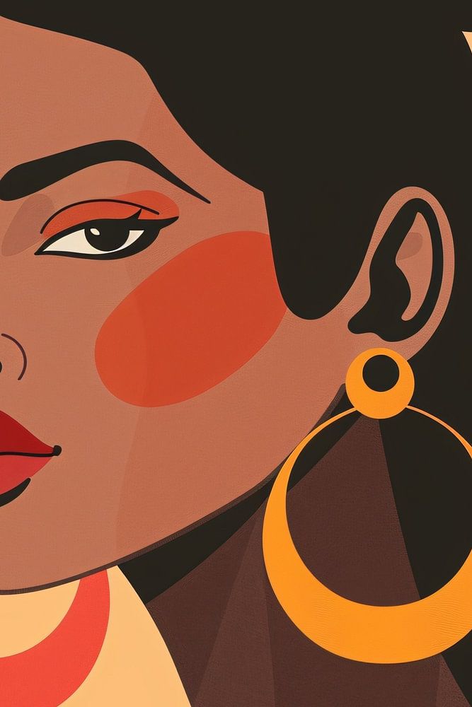 Entdecken Sie die Schönheit der modernen Kunst mit diesem faszinierenden Porträt. Eine perfekte Harmonie aus kräftigen Farben und fließenden Linien bringt die Essenz der Weiblichkeit auf einzigartige Weise zum Ausdruck. Dieses Werk strahlt Eleganz aus mit ihrem klassischen schwarzen Haar, das zu einem hohen Dutt gebunden ist, und konzentriert sich auf die ausdrucksstarken Augen, die ohne Worte Geschichten erzählen. Die warmen Erdtöne in Kombination mit dem tiefen Rot ihrer Kleidung und dem Funkeln ihrer goldenen Ohrringe vermitteln ein Gefühl von Luxus und zeitlosem Stil. Eine wunderschöne Ergänzung für jeden Raum, der einen Hauch von moderner Finesse gebrauchen könnte.