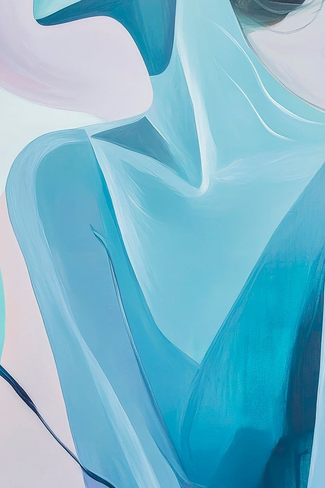 In sanften Blautönen erstrahlt eine elegante Figur in Traumwelt, umhüllt von harmonischen Formen und fließenden Linien. Die subtile Ruhe und die mystische Aura schaffen eine perfekte Atmosphäre, die zum Nachdenken anregt. Dieses Kunstwerk entfaltet seine Wirkung besonders gut im Schlafzimmer, wo es für Gelassenheit und Inspiration sorgt.
