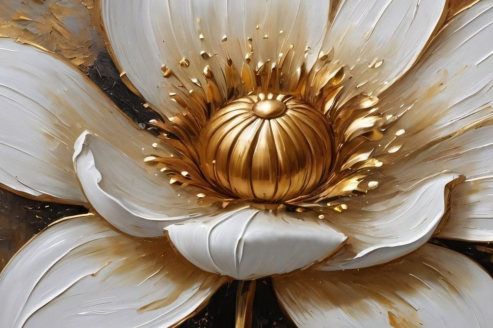 Entdecken Sie die raffinierte Eleganz dieses modernen Kunstwerks, das Ihren Raum mit seiner dynamischen Komposition und luxuriösen Ausstrahlung verwandeln wird. Der subtile Goldschimmer auf den zarten Blütenblättern, der durch einen Hintergrund in satten Erdtönen noch verstärkt wird, macht dieses Kunstwerk zu einem zeitlosen Mittelpunkt, der Ihr Interieur sofort aufwertet. Es eignet sich sowohl für Wohnräume als auch für professionelle Umgebungen und verleiht ihnen einen Hauch von Raffinesse, ohne überwältigend zu wirken. Dieses Design ist mehr als ein Gemälde; es ist eine Investition in Kunst, die die Essenz von Luxus widerspiegelt.
