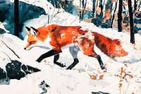 Ein wunderschönes Aquarell, das einen Fuchs zeigt, der elegant durch einen Winterwald schreitet. Die leuchtenden Farben und dynamischen Pinselstriche erwecken die Szene zum Leben und schaffen ein bezauberndes Bild der Natur. Perfekt für Liebhaber von Tierkunst und natürlicher Schönheit, und eine einzigartige Ergänzung für jedes Interieur.