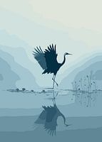 Bestelle dieses Landschafts-Wandbild Eleganter Kranich im Wasser von Pixelbull Design als Reproduktion auf Leinwand, Alu-Dibond, als Poster, Fototapete oder Acrylglasbild.
