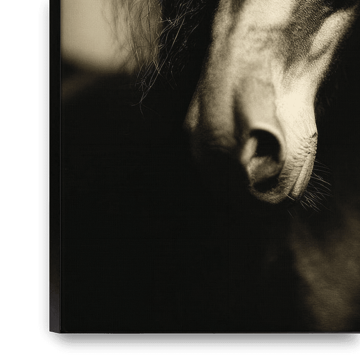 In diesem Porträt ist das Pferd mit einer fast königlichen Ruhe eingefangen: Die feinen Details, der Glanz des Fells und das subtile Spiel von Licht und Schatten erwecken seine Seele zum Leben.
