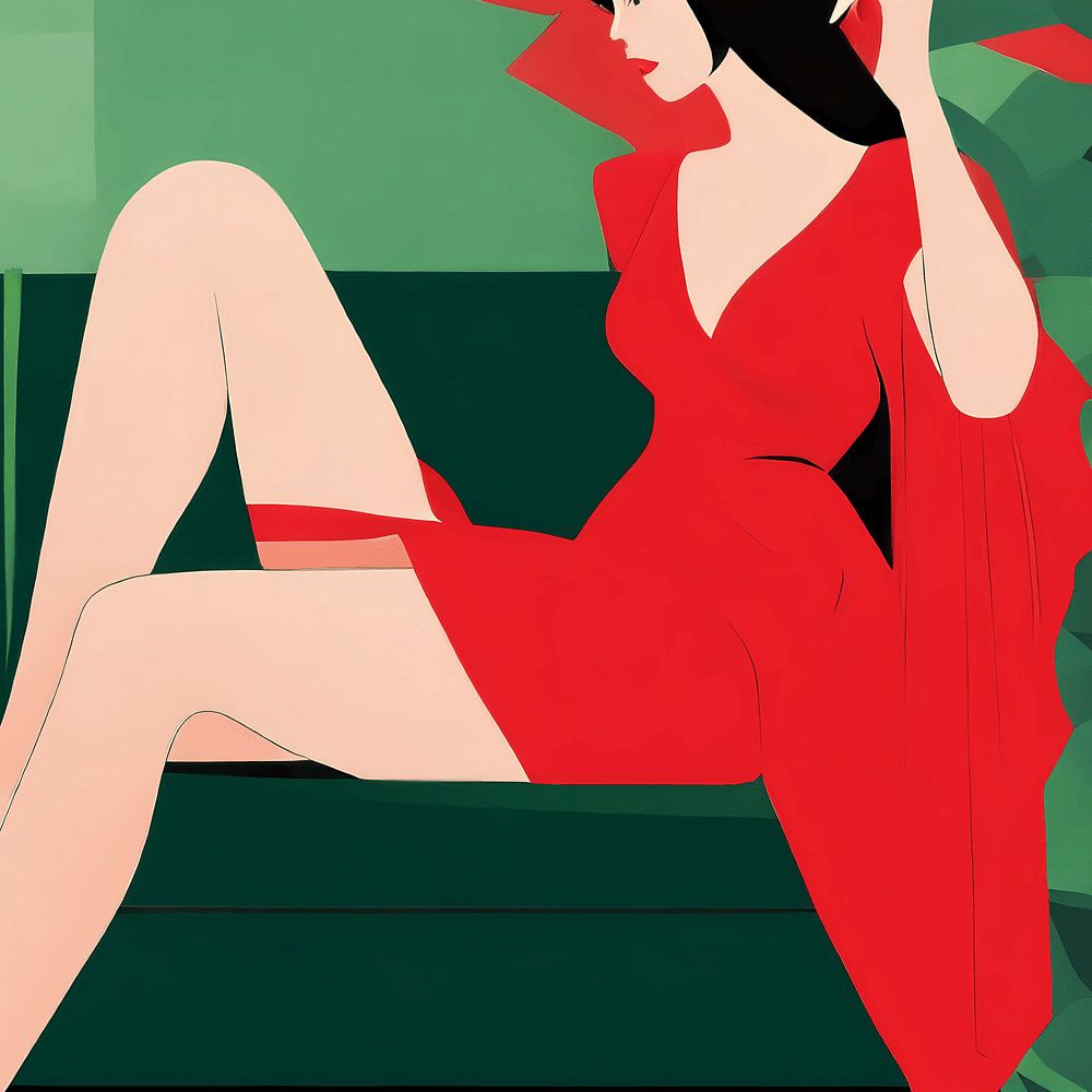 Tauche ein in die raffinierte Welt der Kunst mit "Eleganz im Rot". Dieses atemberaubende Kunstwerk zeigt eine stilvolle Frau in einem roten Kleid, die auf einem grünen Sofa sitzt. Die Kontraste von Rot und Grün erzeugen eine dynamische und dennoch harmonische Atmosphäre, die jedes Wohnzimmer oder Büro aufwertet. Der minimalistische Stil und die geschmeidigen Linien verleihen dem Bild eine moderne Eleganz, die perfekt für zeitgenössische Einrichtungen geeignet ist. Hol dir dieses Kunstwerk als Leinwanddruck, um deiner Umgebung einen Hauch von Klasse und Anmut zu verleihen.