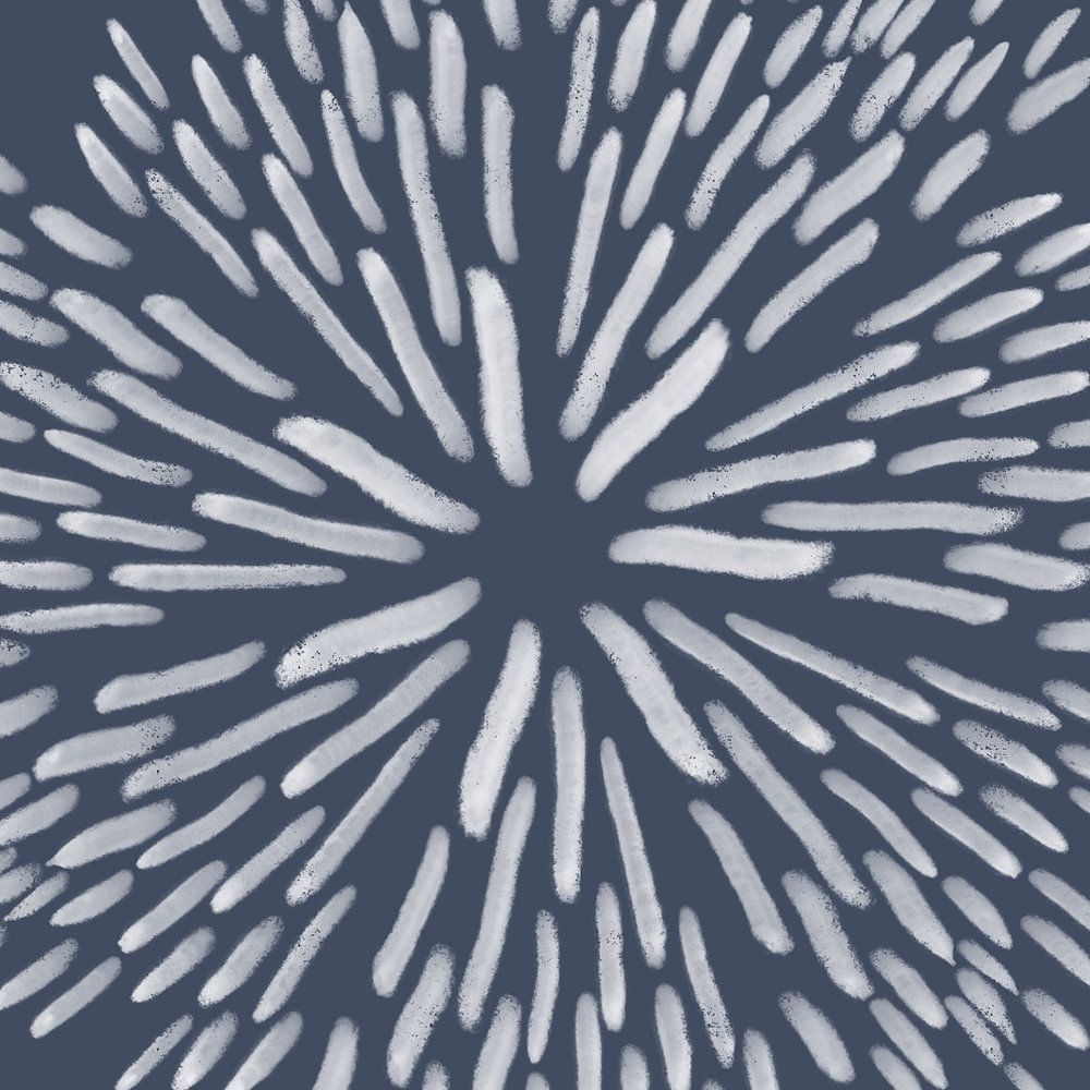 Wasser - Eis (Winter) aus der 4-teiligen minimalistischen abstrakten Illustrationsserie meiner Vision der Elemente und Jahreszeiten. Weiße Markierungen und Tupfen auf tiefem, dunklem Blau, Marineblau, Indigo.