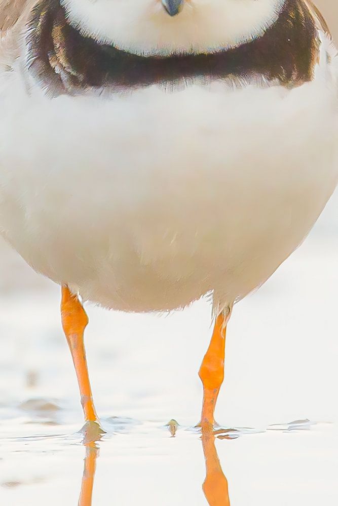 Dieser Regenpfeifer wurde an einem Strand in Spanien fotografiert. Ich lag flach auf dem Bauch in einem Schutzzelt, und der kleine Vogel hat sich nach der Aufnahme fast auf meine große Linse geschwungen.