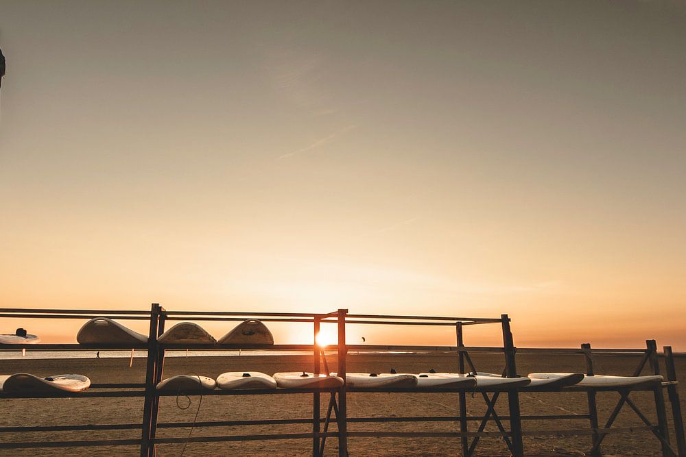 Ende des Tages am Noorderstrand in Borkum, Deutschland. Sonnenuntergang