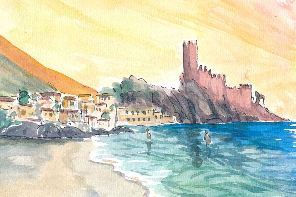 Entspannen am Strand von Malcesine am Gardasee bei Sonnenuntergang