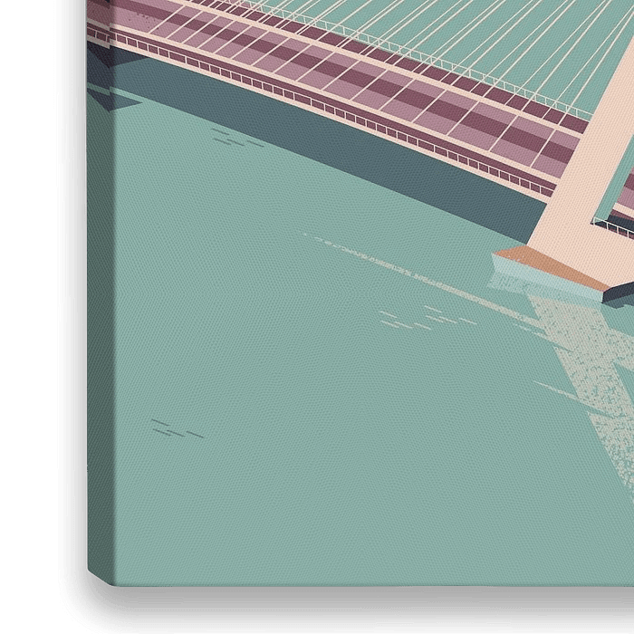 Eine grafische Illustration der Erasmusbrücke in Rotterdam aus der Vogelperspektive.