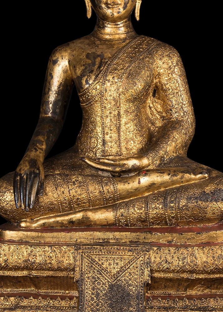 Der „Erdberührende Buddha“ ist eine der ikonischsten Darstellungen Buddhas in der thailändischen Kunst und Kultur. Diese besondere Haltung, bekannt als „Bhumisparsha Mudra“, hat im Buddhismus eine tiefe spirituelle Bedeutung. Es stellt den entscheidenden Moment auf Siddhartha Gautamas Reise zur Erleuchtung dar, als er die Erde aufrief, um Zeuge seines Triumphs über die Versuchungen von Mara, dem Dämon der Illusion, zu werden.