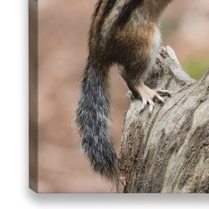 Stilleben eines Eichhörnchens auf einem Baumstamm