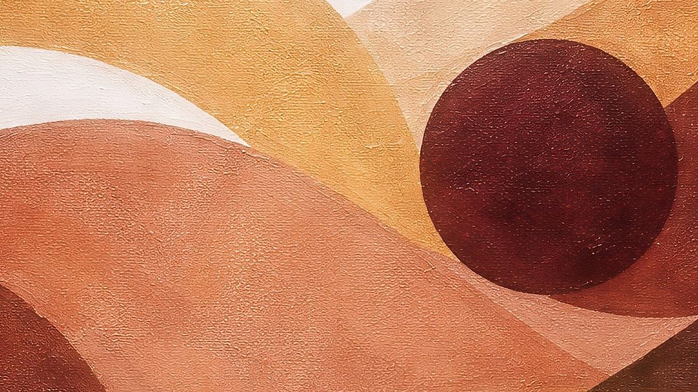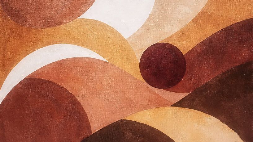 Es handelt sich um ein modernes, minimalistisches Werk im Japandi-Stil, das sich durch organische Formen und eine warme Farbpalette aus Erdtönen auszeichnet.