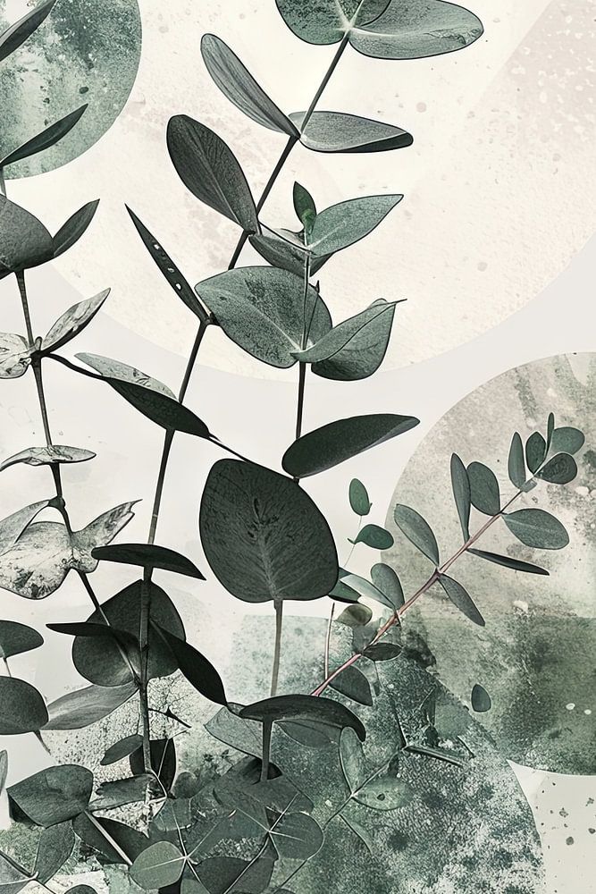 Dieses Kunstwerk vereint die natürliche Schönheit von Eukalyptusblättern mit einer geometrischen Ästhetik. Die verschiedenen Formen und Linien im Hintergrund fügen sich harmonisch zusammen und setzen den Zweig in den Mittelpunkt. Die sanften Grüntöne und das clevere Design machen dieses Werk zu einer perfekten Ergänzung für moderne und stilvolle Räume. Ideal für Liebhaber von geometrischen Kunstwerken und Naturmotiven, vermittelt dieses Bild ein Gefühl von Balance und Ästhetik.
