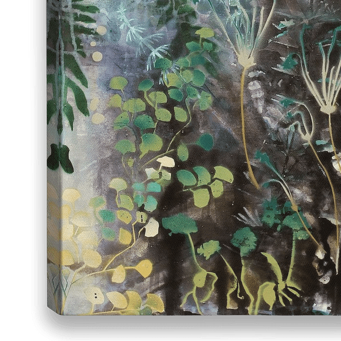 Die kompositorischen Schichten entwickeln sich aus dem nun folgenden weiteren Malverlauf. Es ist der Moment der ordnenden Hand der Künstlerin, die das Bild konzentriert in eine bestimmte Richtung steuert. Die Landschaft, die sich bereits angekündigt hat, soll nun auch eine Geschichte erzählen. Insekten,…