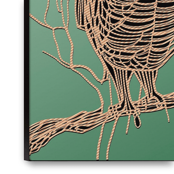Bestelle dieses Vögel Wandbild Eule auf Ast Wolle auf Grün von Harmanna Digital Art als Reproduktion auf Leinwand, Alu-Dibond, als Poster, Fototapete, ArtFrame oder Acrylglasbild, maßgefertigt in höchster Qualität.