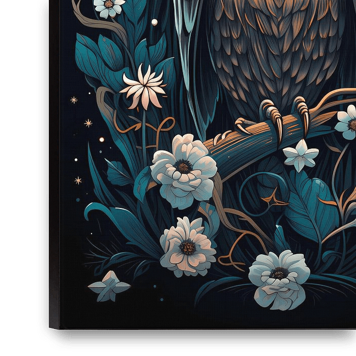 Bestelle dieses Blumen-Wandbild Eule im Mond von haroulita als Reproduktion auf Leinwand, Alu-Dibond, als Poster, Fototapete oder Acrylglasbild.