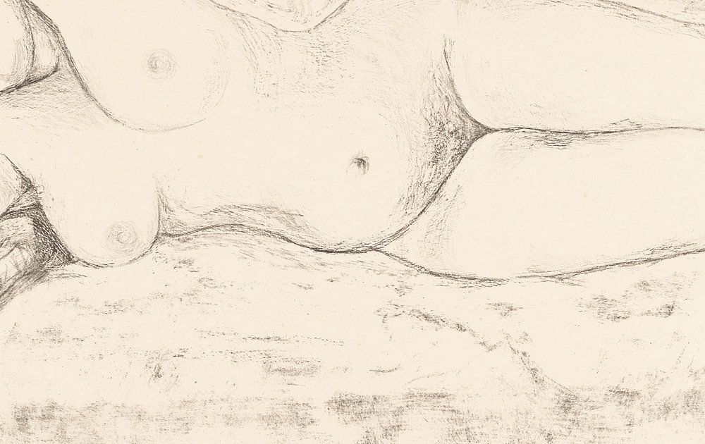 Hier liegt die Frau nackt auf dem Boden mit dem Apfel in der Hand, der Körper ist nackt. Aus diesem Grund sind die Beine, der Bauch, die Hüften, der Torso und die Brüste des Mädchens auf dem Porträt, einem Aktporträt, entblößt.