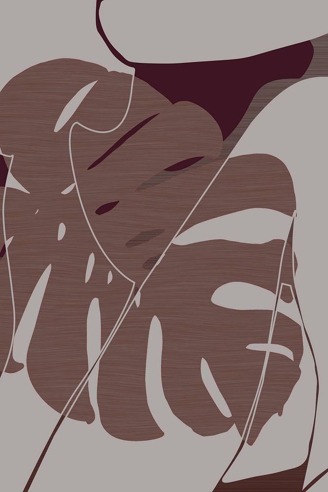 Grafische Zeichnung eines Modells und eines Blattes in roten Farben.
