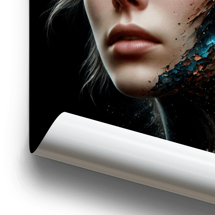 Schönes Fantasieporträt mit schwarzem Hintergrund, das sich für jeden Raum in Ihrem Zuhause eignet.