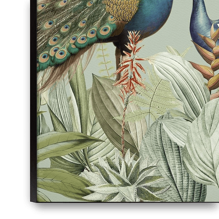 Bestelle dieses Blumen-Wandbild Exotische Pfauen im Paradies 1 von Floral Abstractions als Reproduktion auf Leinwand, Alu-Dibond, als Poster, Fototapete oder Acrylglasbild.