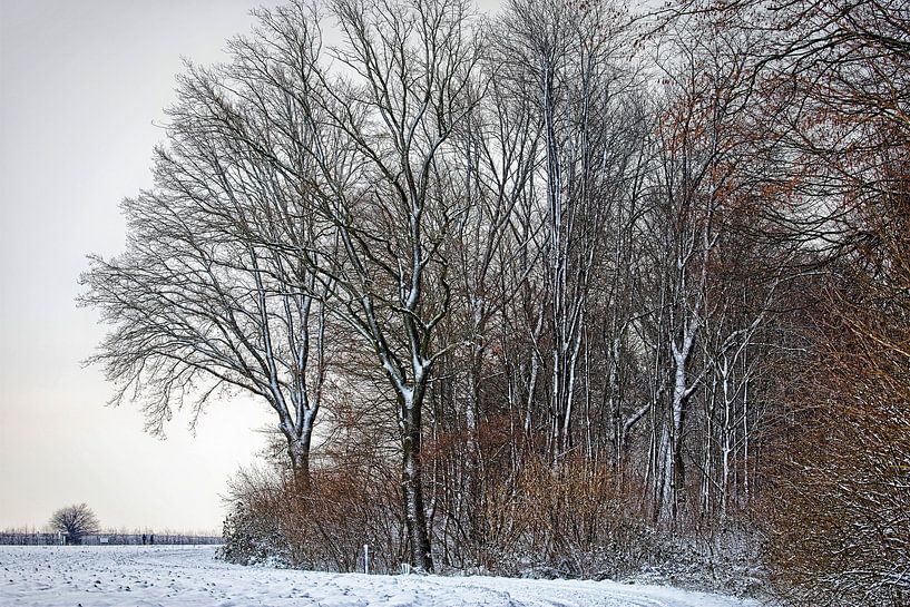 Der Rand des Eyser-Waldes im südlimburgischen Hügelland. Die dünne Schneedecke verstärkt den Kontrast zwischen den Bäumen im Wald.