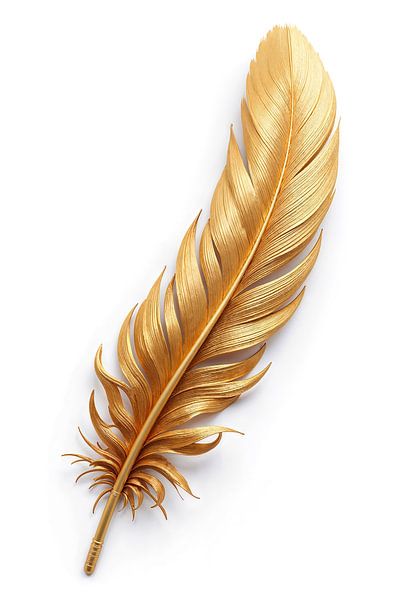 Eine einzelne Feder schwebt in vollkommener Leichtigkeit, als wäre sie vom Raum selbst getragen. Ihre goldene Oberfläche fängt das Licht in sanften Wellen ein, jede feine Struktur wirkt präzise geformt und zugleich organisch lebendig. Die geschwungene Form verleiht ihr eine natürliche Eleganz, während die filigranen Verästelungen eine…