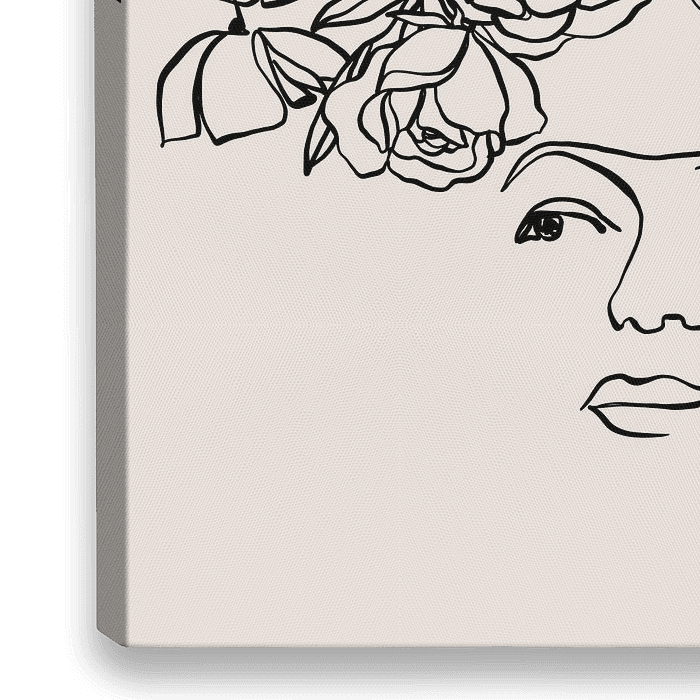 Bestelle dieses abstrakte Wandbild FRAU MIT BLUMEN IM HAAR von Cats & Dotz als Reproduktion auf Leinwand, Alu-Dibond, als Poster, Fototapete oder Acrylglasbild.