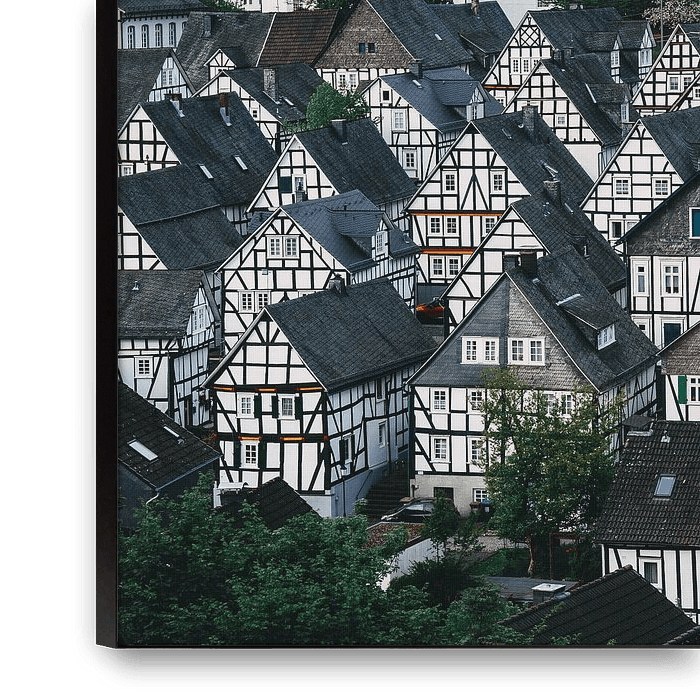 Ihre gewählte Kunst auf Leinwand, gespannt in einem Aluminiumrahmen. Schnell und einfach austauschbar für eine frische Ausstrahlung und ganz nach Ihren Wünschen.