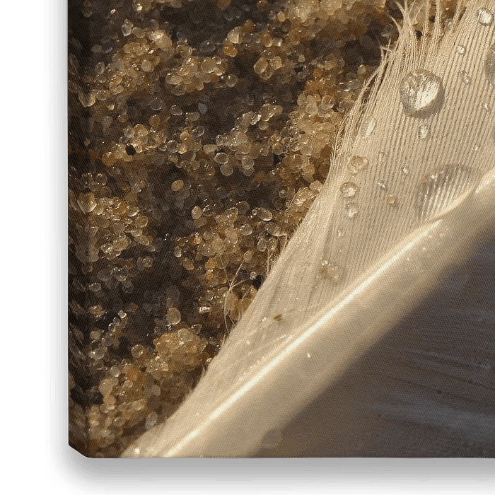Eine Feder am Strand im letzten Licht des Tages. Das weiche, warme Streiflicht hebt die Texturen des Sandes und der Feder wunderbar hervor. Ein schönes und heiteres Bild für Ihre Wand.