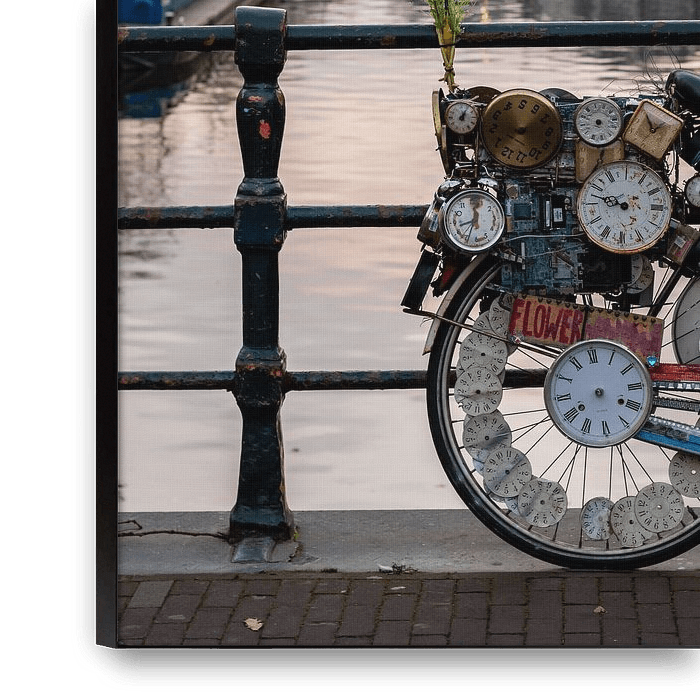 Bestelle das Foto Fahrrad mit Glocken auf den Amsterdamer Grachten von Andrea de Jong als Reproduktion auf Leinwand, Alu-Dibond, als Poster, Fototapete oder Acrylglasbild.