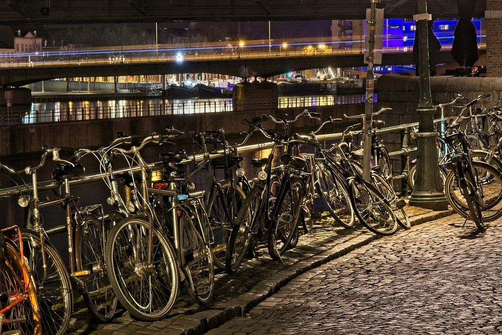 Gemütliche Unordnung in diesem Fahrradpark an der Maas in Maastricht, Limburg, Niederlande.