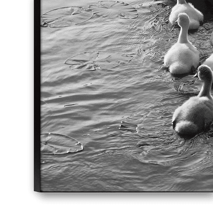 Schwanenfamilie , Schwan mit ihrem Nachwuchs , Schwan schwarz-weiß