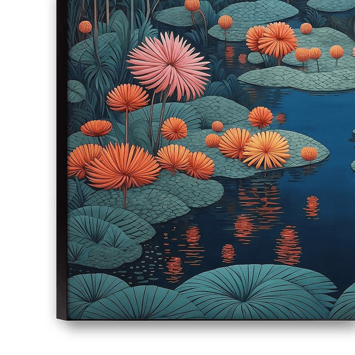 Die Szene ist voller faszinierender Details: Fließende Linien und verspielte Muster gehen nahtlos in abstrakte Strukturen über und schaffen ein Gefühl von Bewegung und Tiefe. Jedes Element, von bizarren Bäumen bis hin zu bezaubernden Blumen, trägt zu einer fast hypnotischen Atmosphäre bei, die zum Erforschen einlädt. Die farbenfrohen Paletten strahlen Energie aus, bleiben aber harmonisch ausgeglichen, was das Werk sowohl dynamisch als auch heiter macht.