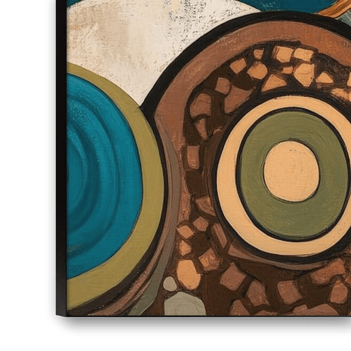 Ein faszinierendes Spiel aus harmonischen Farben und ausdrucksstarken Formen zieht den Betrachter in seinen Bann. Die geheimnisvollen Augen und der sanfte Ausdruck strahlen Ruhe aus, während die kreisförmigen Elemente dynamische Lebensfreude vermitteln. Perfekt geeignet für ein Wohnzimmer, bringt dieses Kunstwerk sowohl Kreativität als auch einen Hauch von Eleganz in den Raum.