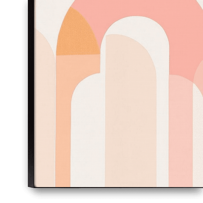 In sanften Pastellfarben tanzen runde Formen und dynamische Bögen harmonisch miteinander. Ein imposanter Kreis schwebt über einer Reihe geschwungener Strukturen, die an eine stilisierte Landschaft erinnern. Die subtile Farbverläufe schaffen ein Gefühl von Ruhe und Leichtigkeit, während die geometrischen Elemente eine verspielte…