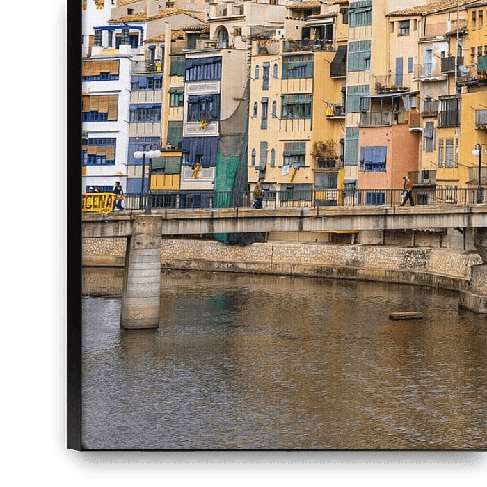 Bestelle dieses Vögel Wandbild Farbenfrohe Häuser am Wasser in Girona, Spanien von Jessica Lokker als Reproduktion auf Leinwand, Alu-Dibond, als Poster, Fototapete, ArtFrame oder Acrylglasbild, maßgefertigt in höchster Qualität.