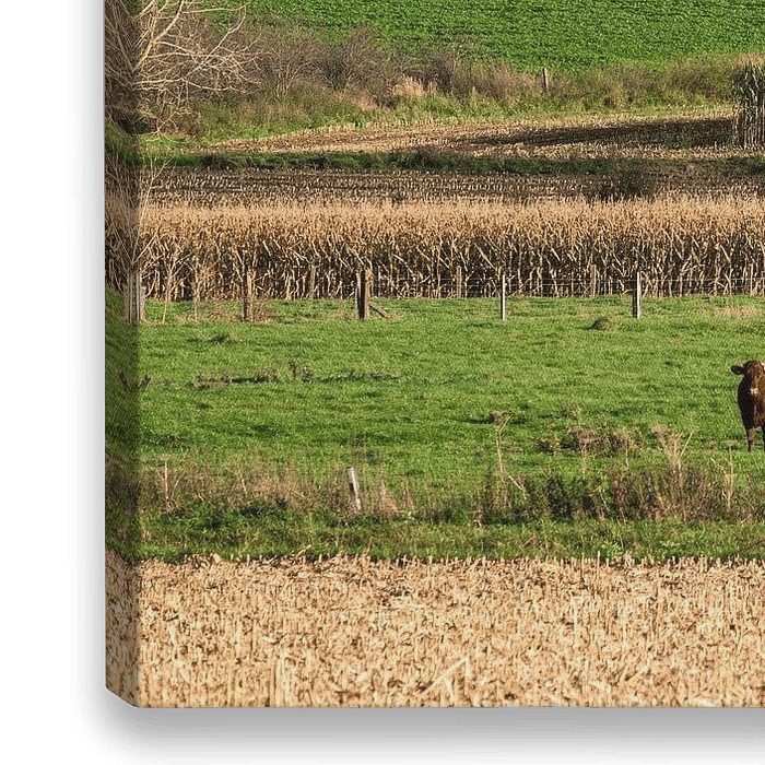 Ein schöner Farbenteppich im Pajottenland. Ein Flickenteppich aus Weizen-, Gras- und Maisfeldern sorgt für schöne Farbnuancen. Die Kühe können noch eine Weile die Herbstsonne genießen.