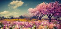 Bestelle dieses Blumen-Wandbild Farbenfroher Frühling Illustration von Animaflora PicsStock als Reproduktion auf Leinwand, Alu-Dibond, als Poster, Fototapete oder Acrylglasbild.