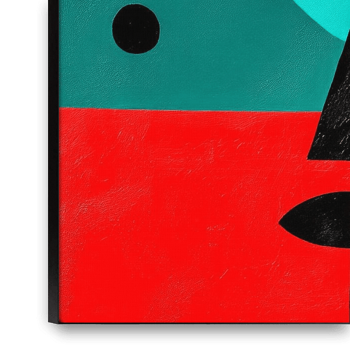 Ein faszinierendes Spiel aus Farben und Formen entfaltet sich hier: Geometrische Elemente vereinen sich zu einem ausdrucksstarken Gesicht, dessen markante Augen und lebhafter roter Punkt sofort ins Auge springen. Diese moderne Komposition verleiht jedem Wohnzimmer einen Hauch von Kreativität und regt zum Nachdenken an, während sie…