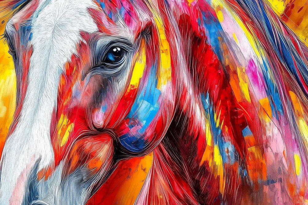 Buntes Pferdegemälde voller Dynamik – farbintensives Kunstwerk für Reitbegeisterte und moderne Wohnräume mit Statement-Charakter.