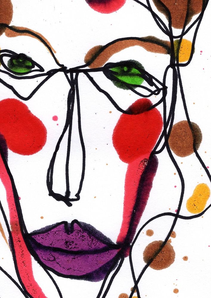 Clownhafter Tintenausdruck auf Papier. Ein farbenfrohes Ganzes für Ihre Wand. Ein heiteres Ganzes, besonders in einer Serie, mit anderen Illustrationen. Erstellt von MY HAPPY SOUL ART