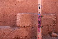 bunt bemalter Mast vor einer Mauer in Südmarokko.