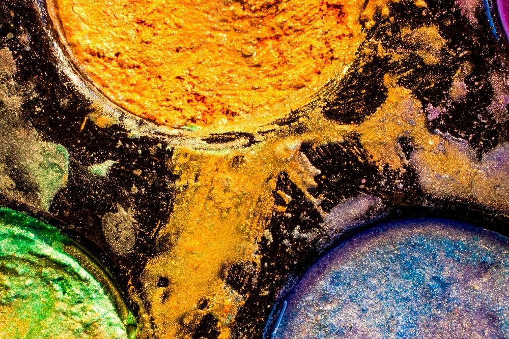 Detailaufnahme eines Teils eines altmodischen Farbkastens.