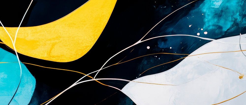In schwingenden, organischen Formen entfaltet sich eine harmonische Komposition aus tiefem Blau, lebendigem Türkis und strahlendem Gelb. Die dynamischen Linien ziehen den Blick an und verleihen jedem Raum eine frische, moderne Note. Perfekt für ein Wohnzimmer oder ein kreatives Büro, wo Inspiration und Leichtigkeit zu Hause sind.