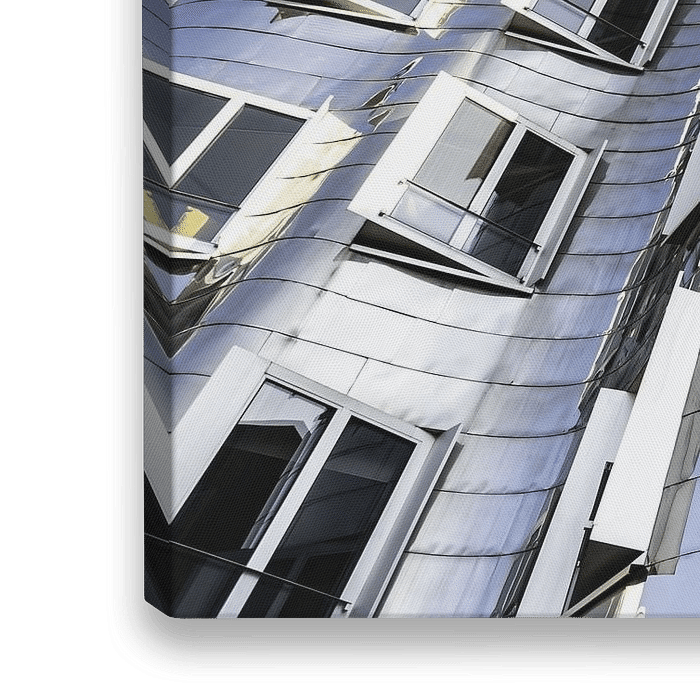 Fassade Gehry Bauten in Düsseldorf Medienhafen mit Wolken