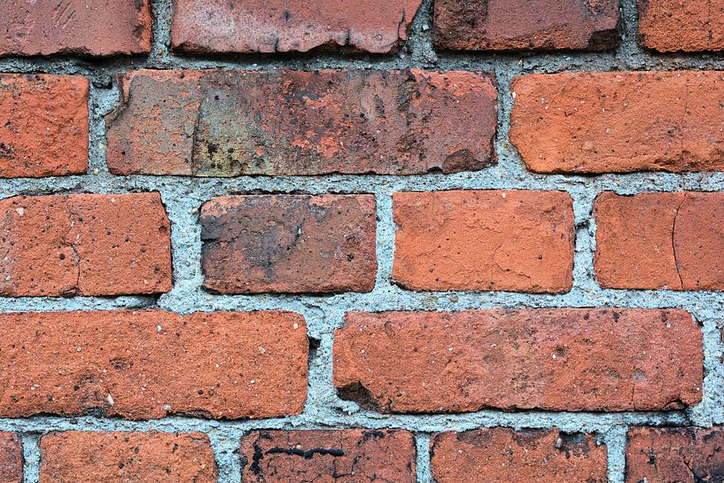 Oberfläche einer gemauerten Fassade eines Hauses aus gebrannten roten Ziegelsteinen in der Innenstadt von Magdeburg in Deutschland