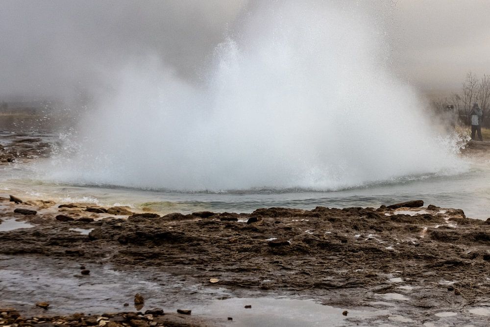 Es ist nach wie vor faszinierend zu sehen, wie der Geysir Strokkur, gleich neben dem weltberühmten Geysir in Island, regelmäßig von einer Blase in eine Eruption übergeht.