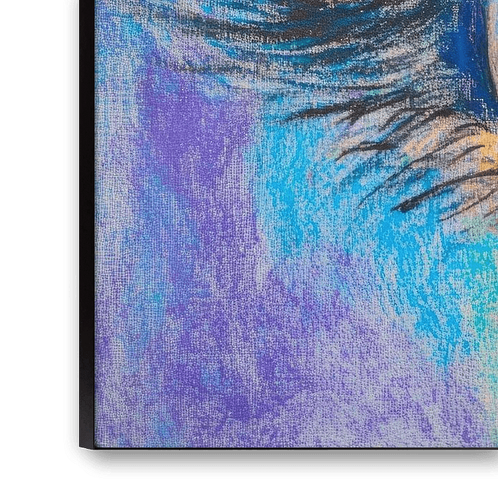 Ein faszinierender Blick fängt die Seele ein, während lebendige Farben harmonisch verschmelzen. Die irisierende Mischung aus Blau und Grün strahlt sowohl Ruhe als auch Energie aus und zieht die Betrachter an. Dieses Kunstwerk eignet sich hervorragend für das Schlafzimmer, wo es eine Atmosphäre der Intimität und Reflexion schafft.