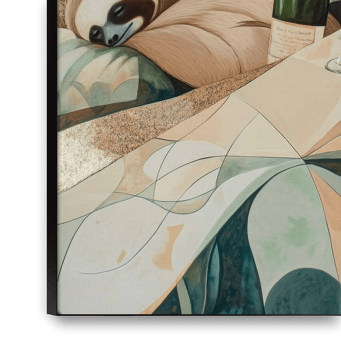 Sanfte, geschwungene Linien umarmen eine entspannte Szene, in der ein gemütlicher Faulpelz in einem warmen Farbenspiel ruht. Neben ihm glänzt eine Flasche Sekt, während ein elegantes Glas darauf wartet, gefüllt zu werden. Diese harmonische Komposition entfaltet eine Atmosphäre von Genuss und Entspannung, wie ein stiller Moment, der die…